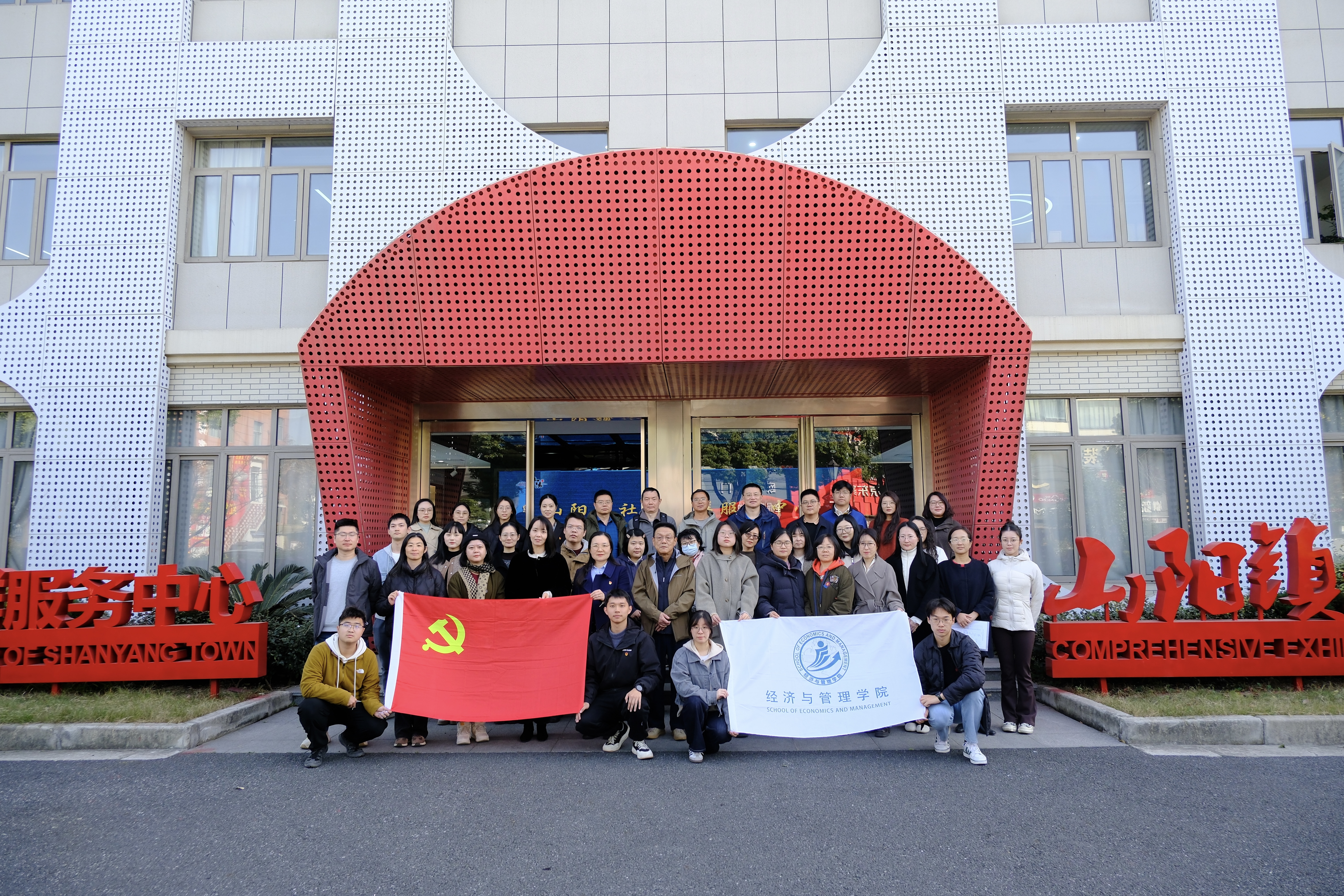 2025年11月28日,经济与管理学院教师党支部组织党员教师前往秦望村、山阳镇党群服务中心开展主题党日活动。