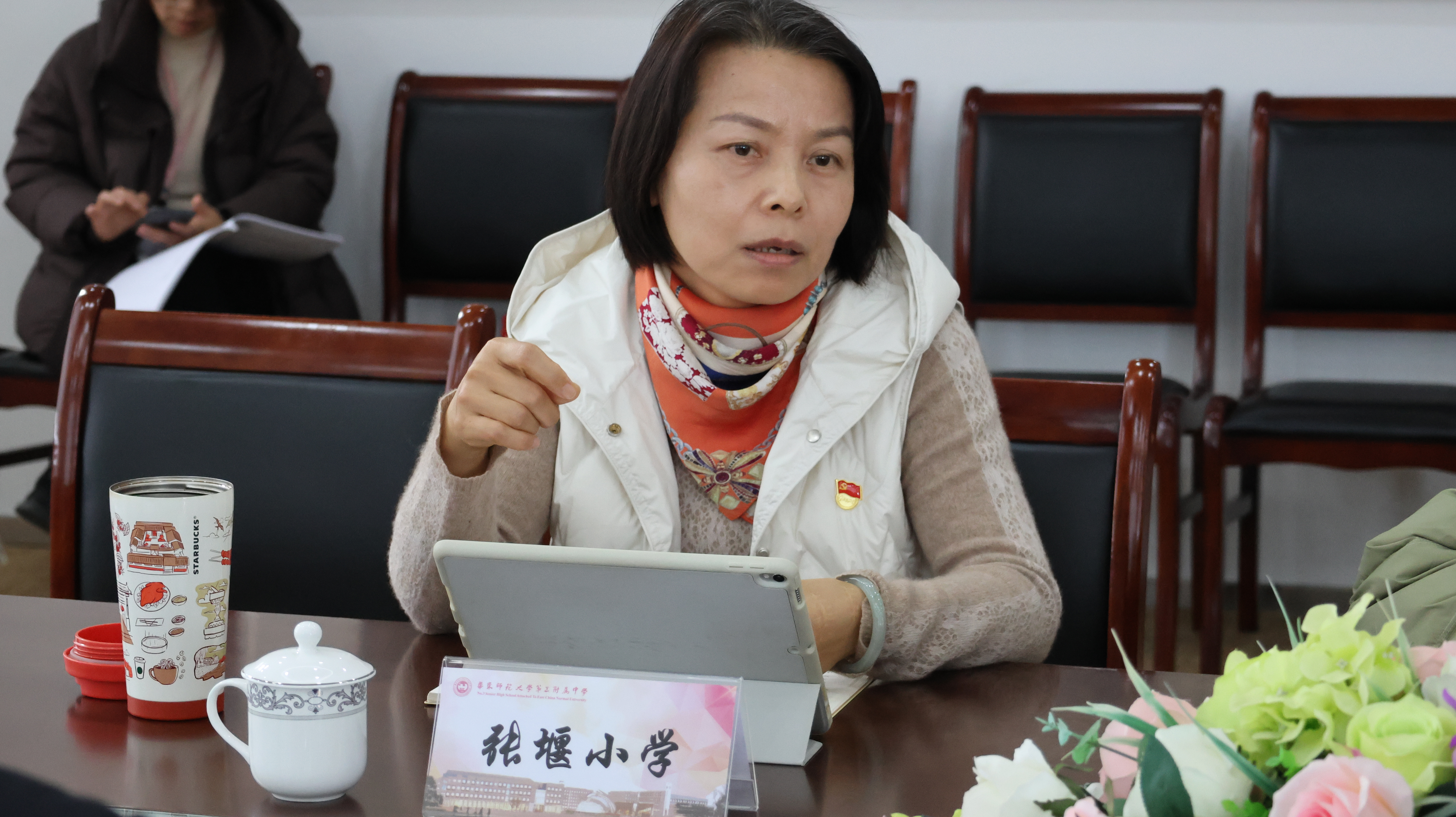 张堰二中党支部副书记陈艳洋介绍“四阶成长课程”与“读懂金山”项目化学习探索,通过课程与实践深度融合夯实育人根基,表达了借跨学段合作拓宽育人边界的期许。