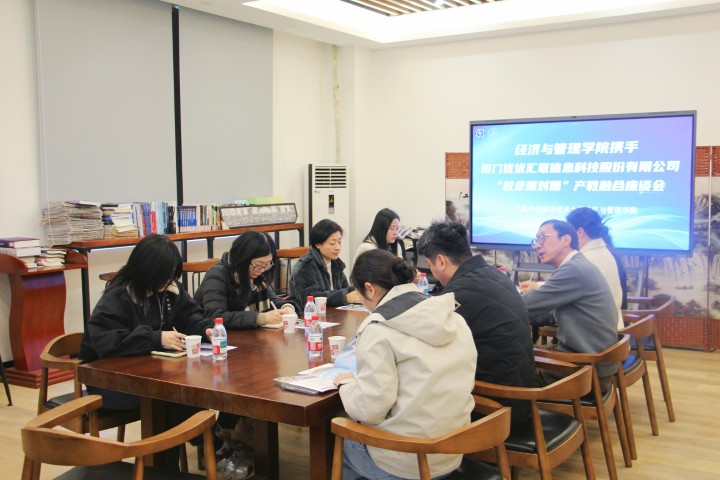 会议伊始,张院长对厦门优优汇联信息科技股份有限公司副总经理何燕红、上海职业院校工作对接负责人刘彩霞的到访致以诚挚欢迎。他着重指出,产教融合是推动专业发展、提升人才培养质量的关键举措,此次座谈会将为全媒专业与企业之间搭建起深度沟通合作的优质桥梁。随后,何燕红女士围绕公司发展历程、业务范畴及未来规划展开详细介绍。这一分享不仅让在场老师对行业动态有了更深刻的理解,也为产教融合的具体方向提供了清晰指引。自由交流环节,气氛热烈,大家畅所欲言。经深入探讨,双方达成多项合作共识。企业将开展专家进校园活动,以新媒体运营为切入点,为经管学院师生开展专业培训,通过多元形式传授行业前沿知识与技能;学院教师也将赴企业实地学习交流,汲取企业运营管理经验,将实际案例融入教学,让教学更贴合市场需求。