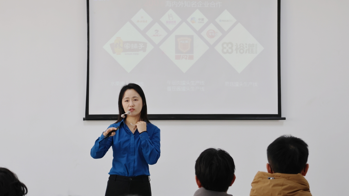 为了让同学们更直观地理解品牌战略的落地,李总分享了多个行业标杆案例。这些案例包括为蜜雪冰城打造的果酱生产线、为梅林设计的午餐肉生产线,以及为家家红定制的黄桃罐头生产线等。这些案例不仅展示了尼为科技在技术上的深厚积累,更体现了其根据不同客户需求提供定制化解决方案的能力。即使在海外,其为菲律宾客户打造的沙丁鱼罐头生产线也实现了高效、稳定的量产,赢得了客户的高度认可。