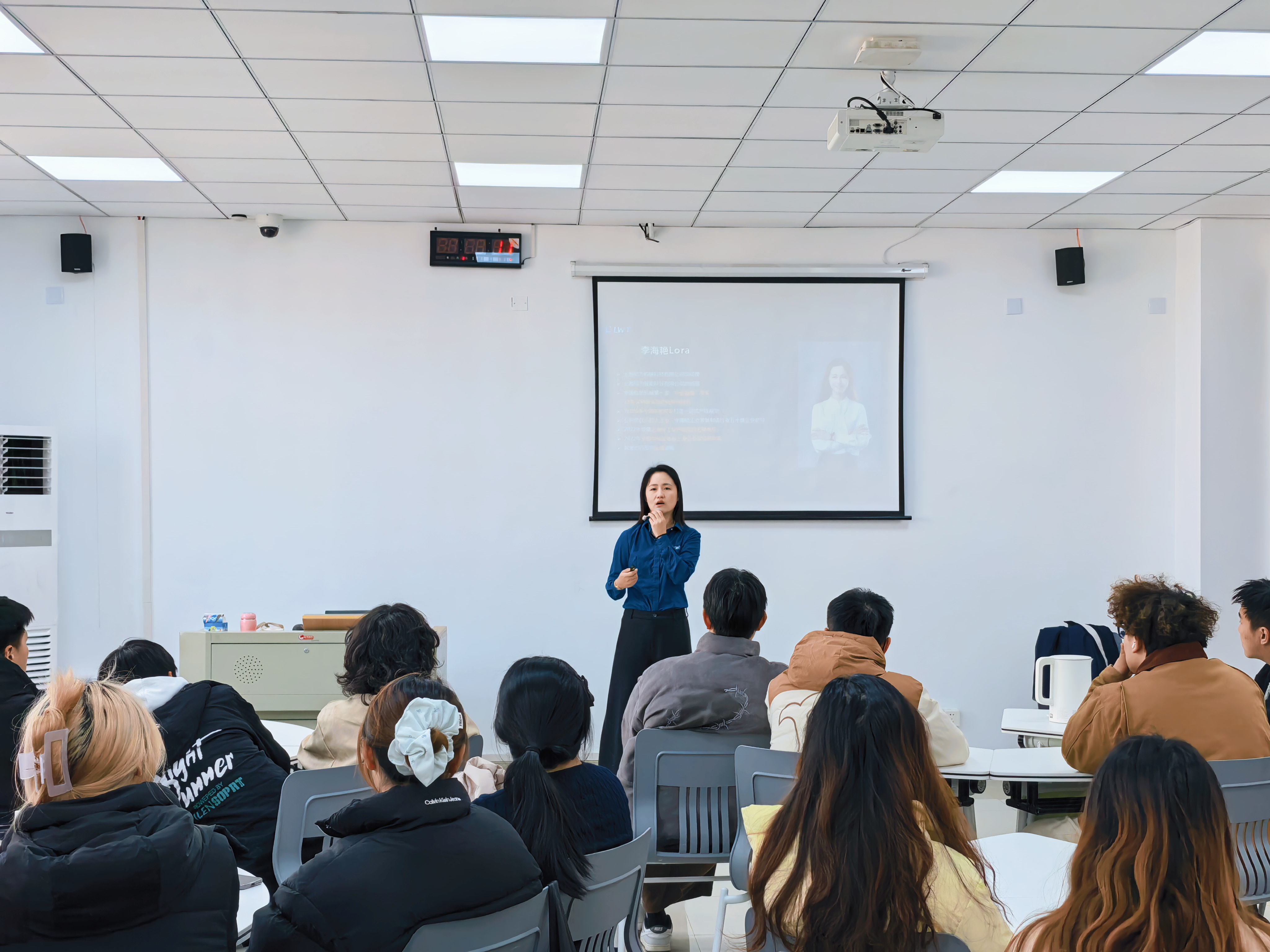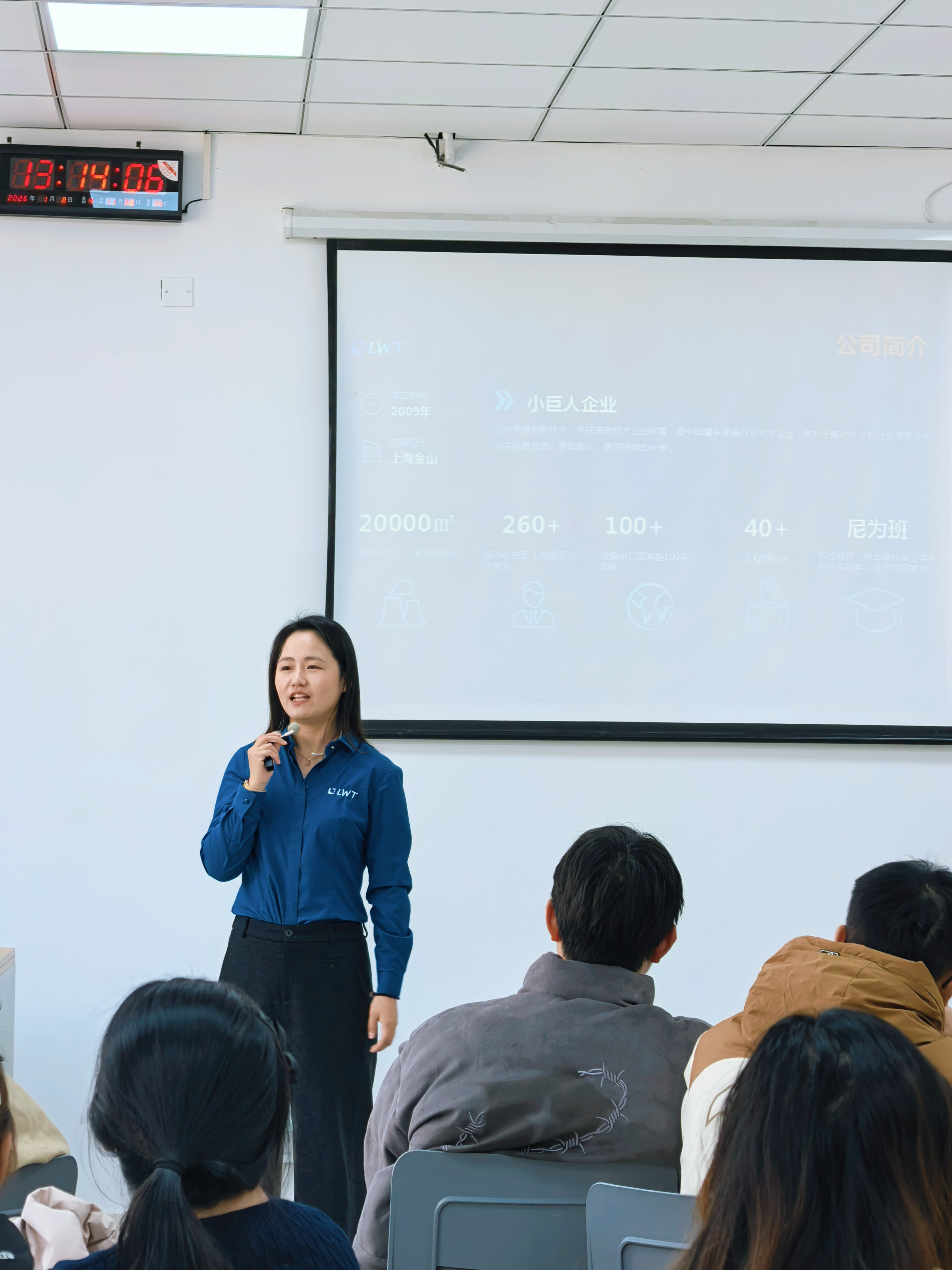 同学们纷纷表示,这次分享会拓宽了他们的视野,对未来的职业规划和创业方向有了新的启发。李总特别强调了售后服务的重要性。她介绍了公司如何通过一系列标准化措施,将“工程师上门难、安装复杂、设备操作难、对接难”等行业痛点逐一化解。