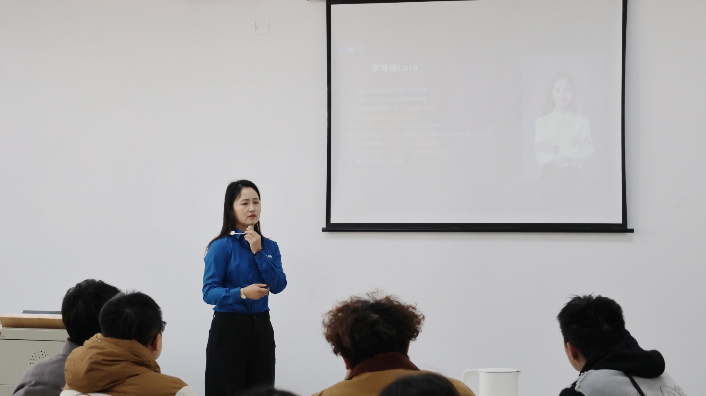 为深化产教融合,提升大学生的实践能力与行业认知,2026年1月8日下午,我院全媒体电商运营专业在3号楼502教室举办了一场别开生面的实训活动。本次活动特别邀请上海尼为智能科技有限公司总经理李海艳(Lora)围绕“打造品牌战略,让中国智造走向高端市场”主题展开分享,系统阐述了尼为在市场变局中凭借技术升级、工厂升级与组织升级,实现高质量发展的实践路径,展现了中国罐头装备行业领军企业的创新魄力与全球视野。