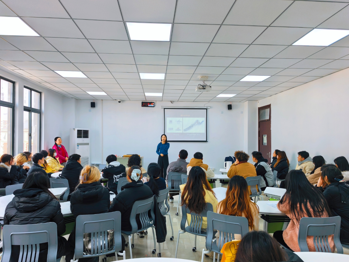 本次实训由四位专业教师全程指导,她们巧妙地将企业真实项目融入实训任务之中,确保实训内容贴近实际、富有挑战性。其中,王佳佳、曹珊珊两位老师针对24年级学生,以直播运营为核心,从话术设计、方案策划到真实在线直播,进行了全方位、系统化的培训与指导。而陶斯佳、包文夏两位老师则带领23年级学生投身于短视频拍摄任务中,通过实践探索产品推广与宣传的有效途径。此外,专业还特别邀请了多位企业导师走进校园,举办专题讲座,为同学们带来了行业前沿的知识与实战经验,进一步丰富了实训内容,拓宽了同学们的视野与思路。