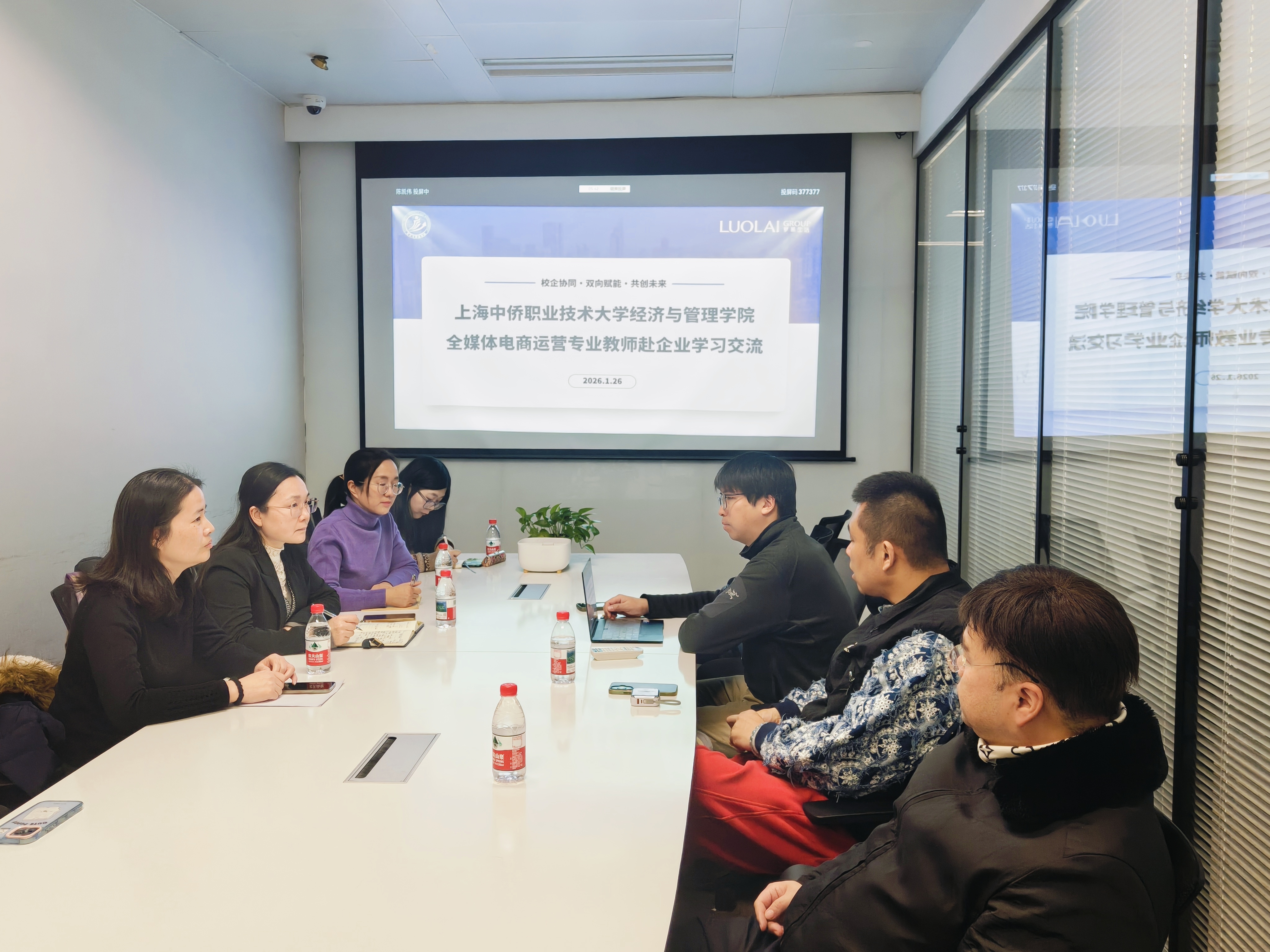 为深化校企合作内涵,推动教师专业技能提升,助力人才培养与产业需求精准对接,1月26日,全媒体电商运营专业教师团队前往罗莱生活科技股份有限公司(以下简称“罗莱生活”)开展交流学习活动。此次活动由专业主任俞春英带队,经管学院党总支书记杨慧,专业教师陈灵萍、韩雯倩,北京大学校友会人工智能与WEBX协会吕秘书长,以及罗莱生活线上爆品事业部总经理张勇等企业代表共同参与。