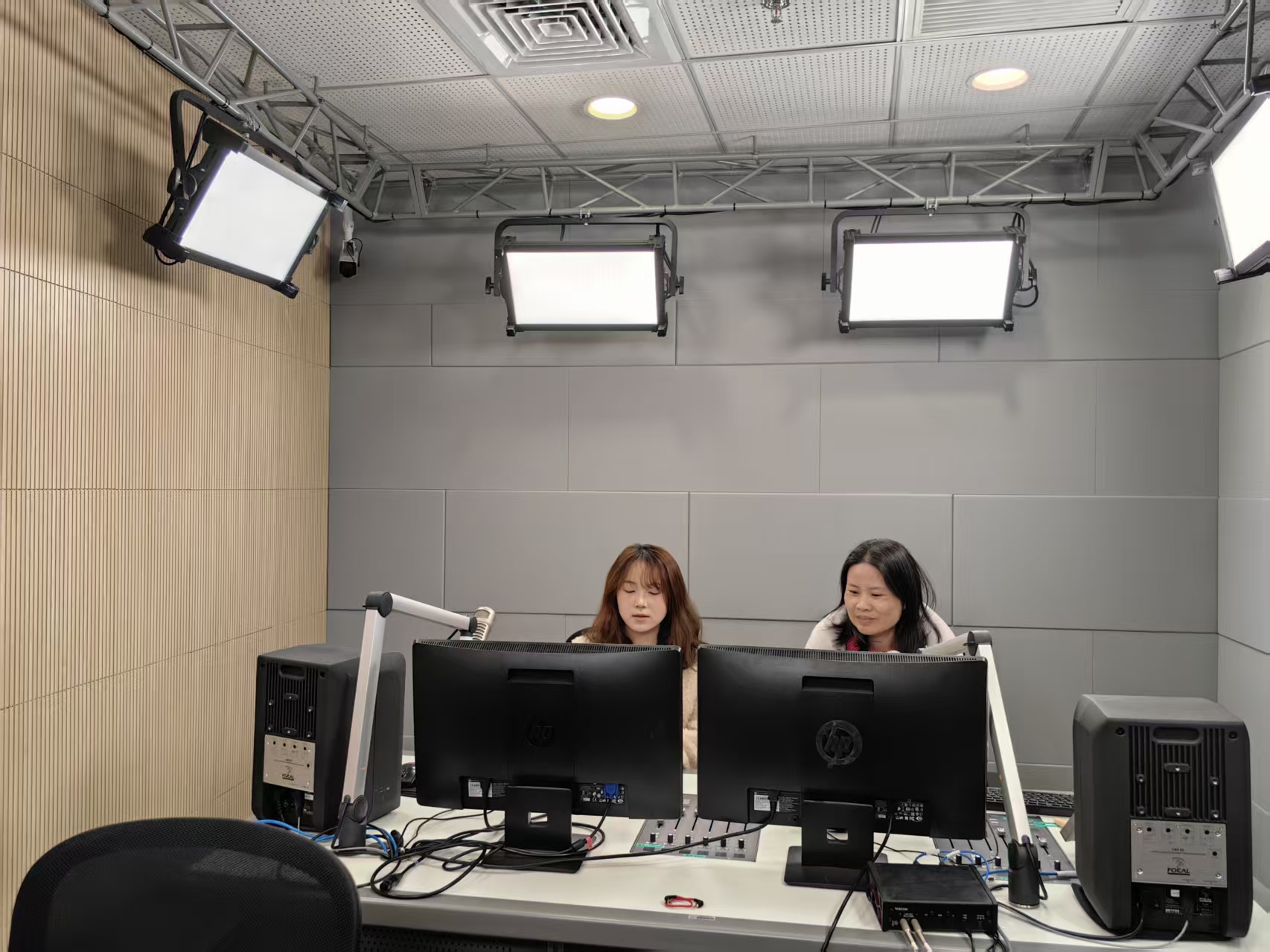 座谈会上,双方围绕全媒体时代电商运营行业的人才需求变化、岗位能力新要求、校企合作新模式等议题进行了深入探讨。SMG东方广播中心创新运营中心副总监秦川介绍了运营中心的组织结构及各岗位职责,特别强调了学生在项目实战经验、职业适应性及踏实肯干等方面在求职过程中的重要性。专业主任俞老师介绍了全媒体电商运营专业的建设情况及人才培养特色,并重点询问了企业对于实习生的能力要求、招聘需求等。双方就学生实习实训、引入真实项目进校园等合作的可能性进行了具体磋商。随后,在秦川副总监的热情接待与陪同下,专业教师团队深入参观了频率直播间、网络直播间、广播艺术中心等核心运营区域。
