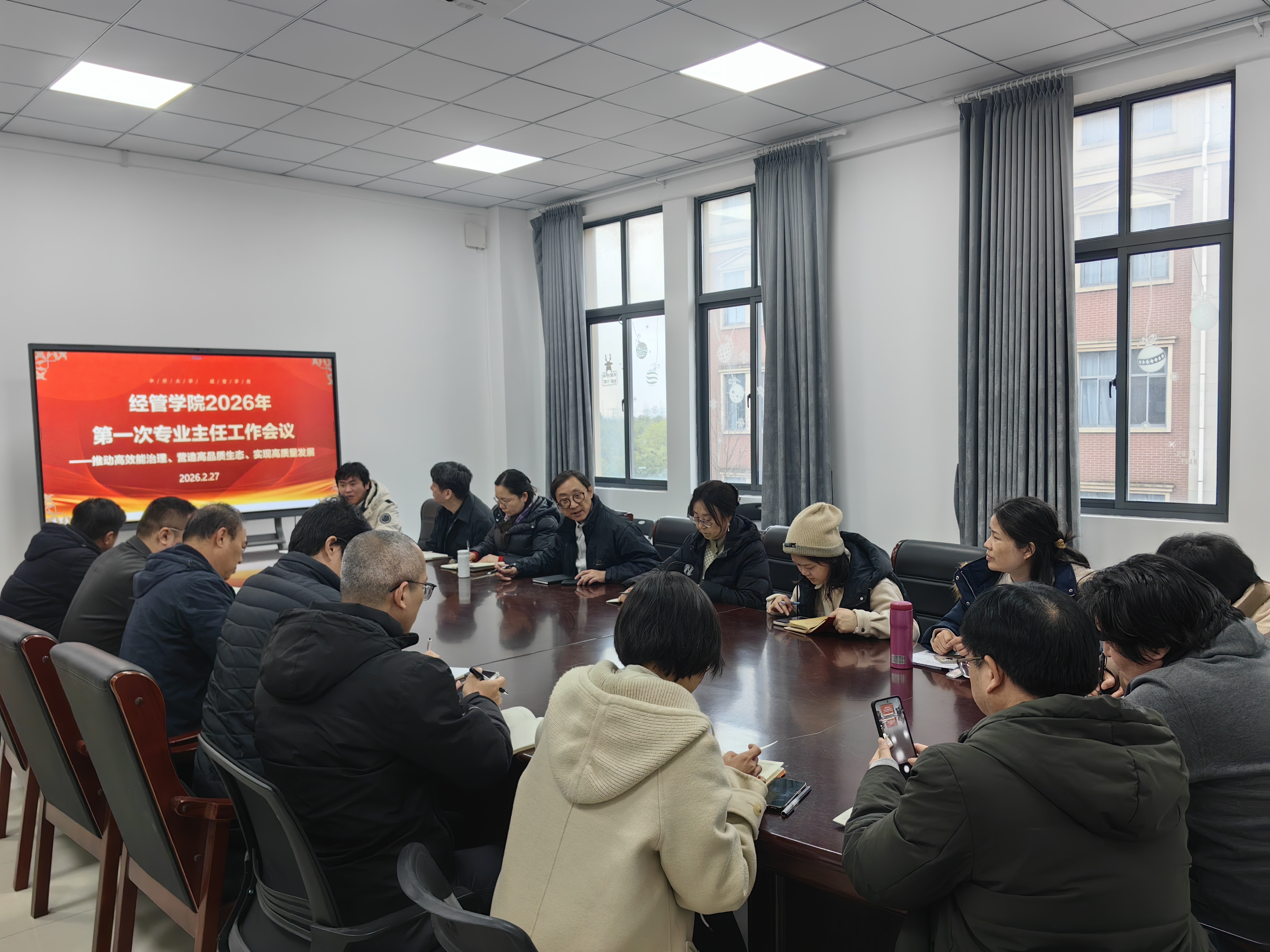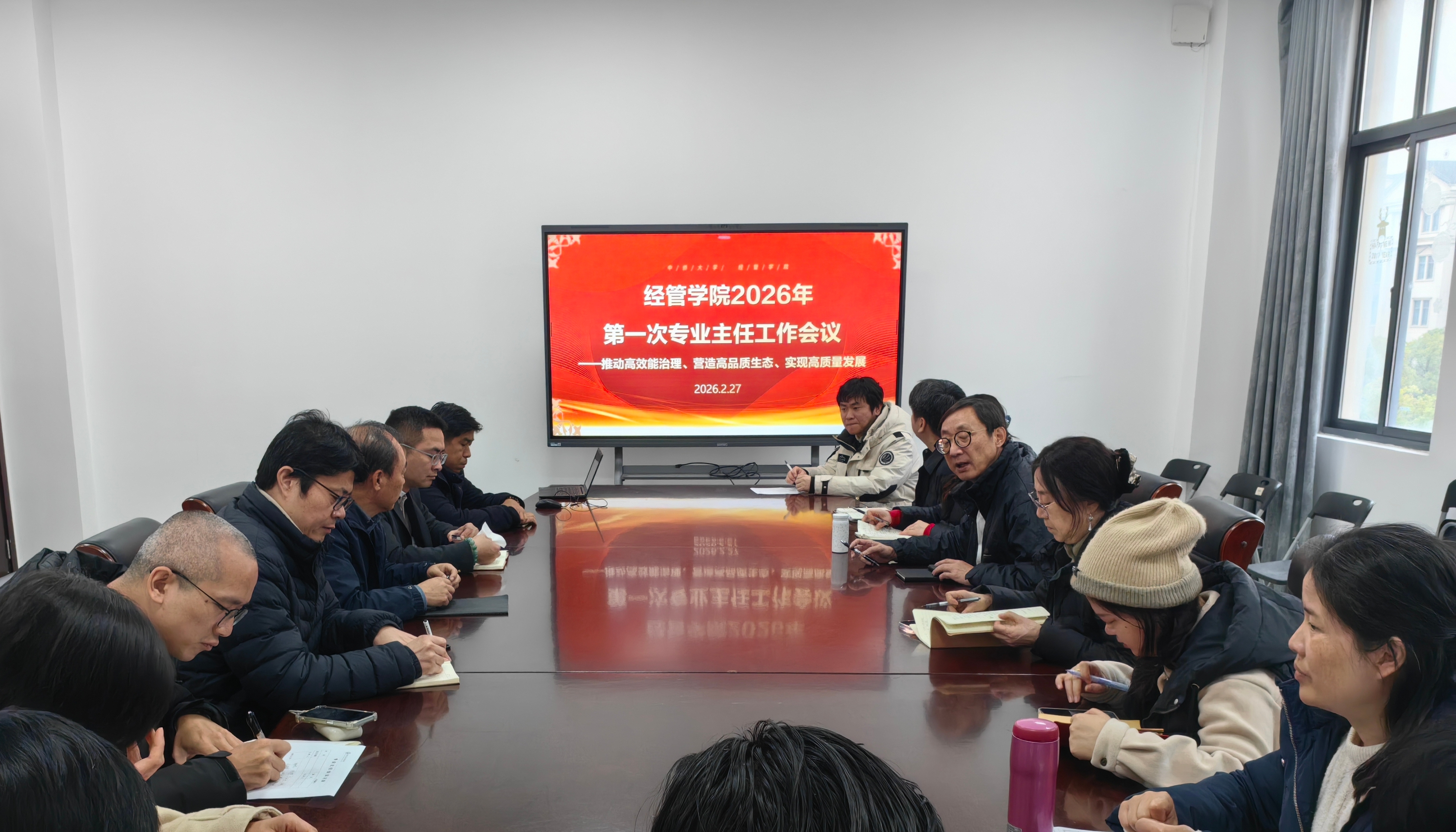 为了全面安排新学期重点任务,统一思想、明确方向。2026年2月27日,经济与管理学院在3号教学楼307会议室召开新学期专业主任工作会议,学院院长张炳达,学院党总支书记杨慧,副院长范海燕,院党总支副书记郭骏,全体专业主任及教学秘书出席会议,会议由张院长主持。