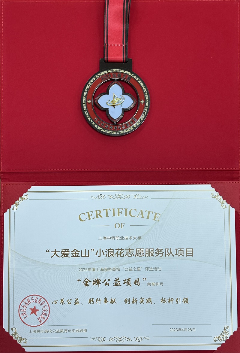 2026年4月28日,上海民办高校公益教育与实践联盟正式公布2025年度上海民办高校“公益之星”评选活动结果,我院“大爱金山”小浪花志愿服务队项目凭借扎实的实践成果与突出的育人成效,成功斩获“金牌公益项目”荣誉称号。